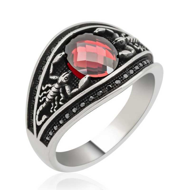 Güçlü bedeni ve ölümcül iğnesi ile bilinen akrep gelecek tehlikeleri veya zor dönüşümleri haber verir. Burç simgesi olduğu için aksesuarlarda da çok tercih edilir. İçinde barındırdığı zehrinden dolayı güç sembolü, aynı zamanda inatçı ve pes etmez özelliği ile bilinir. Bu şık yüzüğü kendinize yada sevdiklerinize doğum gününde, babalar gününde yada özel günlerde hediye olarak tercih edebilirsiniz. Akrep yüzük 925 ayar gümüşten imal edilmiştir. Gümüş üzerine oksit kaplama yapılmıştır. Oksit kaplama yapılan yüzükler parlaklığını uzun süre muhafaza eder. Yüzük üzerinde bulunan kırmızı taş zirkondur. Tüm erkek yüzüklerde olduğu gibi gümüş akrep erkek yüzük de el emeği ile üretilmiştir. Gümüş ve değerli taşlar nedeniyle ürün ağırlığında ± %10 sapma olabilmektedir.