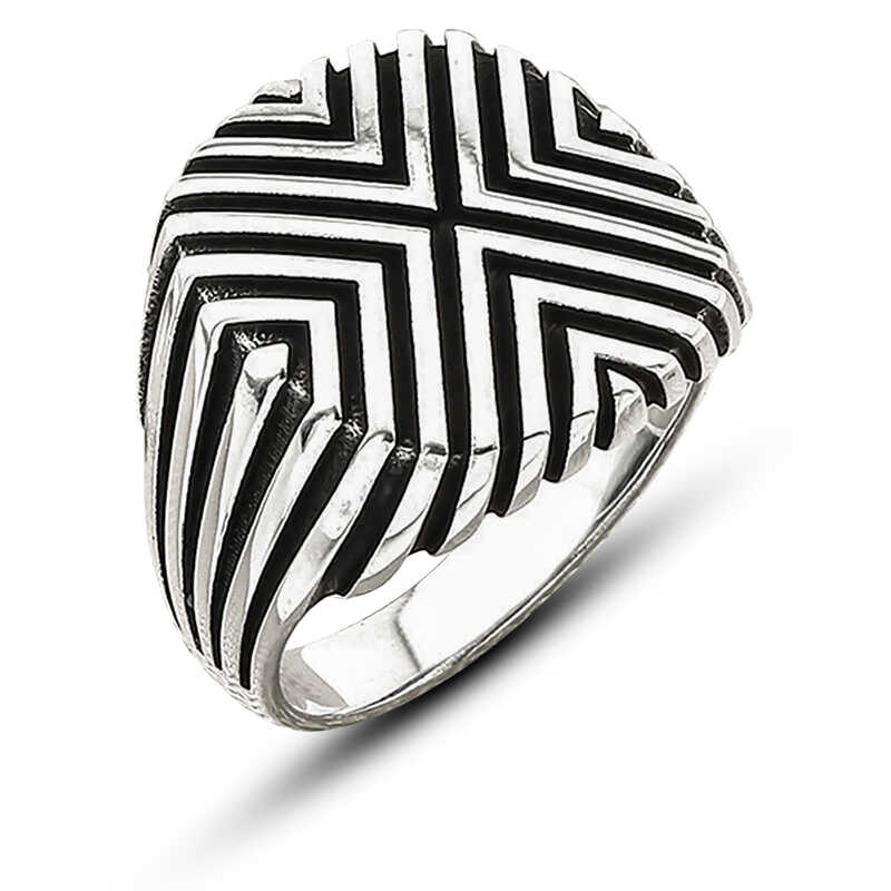 Gümüş Desenli Erkek Yüzük