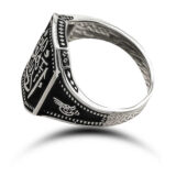 Edeb Ya Hu! Nezaket, terbiye, güzel ahlak, ve saygıyı kucaklar… Edeb Peygamber Efendimizin dünyada var olma gayesini anlatır bize… Bir hadiste; “Ben ancak güzel ahlakı tamamlamak için gönderildim.” buyurmaktadır… Ayrıca bir hadiste de “Beni Rabbim edeblendirdi, ne güzel terbiye etti.” buyurmuştur. Edeb ilimden de önce gelmektedir. Hatta YUnus Emre; “İlim meclislerinde aradım, kıldım talep – İlim geride kaldı, illa edeb, illa edeb” dizeleriyle edebin önemine vurgu yapmıştır. Edeb adeta ruhun örtüsü gibidir. Bu manevi güzellikten yola çıkarak tasarladığımız Edeb ya hu erkek yüzük; kendinize yada sevdiklerinize doğum gününde, babalar gününde yada özel günlerde hediye edebilirsiniz. Bu mükemmel yüzük 925 ayar gümüşten imal edilmiştir. Gümüş üzerine oksit kaplama yapılmıştır. Tüm gümüş erkek yüzüklerinde olduğu gibi gümüş edeb ya hu erkek yüzük de tamamı el emeği ile üretilmiştir. Gümüş ve değerli taşlar nedeniyle belirtilen ortalama ürün ağırlığında ± %10 sapma olabilmektedir.