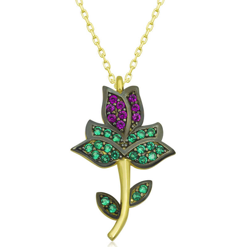 Gümüş Gold Lale Kadın Kolye
