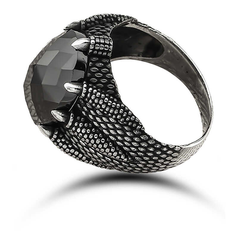 Kartal dövmesi ile güç, kudret ve erdem sahibi olduklarını simgeler. Kartal dövmesi estetik açıdan da güzel bir görünüm vermektedir. Gümüş kartal pençesi yüzük özgürlüğü, gücü ve kudreti elinde olan kişiyi simgeler. Severek kullanabileceğiniz kartal pençesi yüzüğü sevdiklerinize de armağan edebilirsiniz. Yüzük 925 ayar gümüşten imal edilmiştir. Gümüş üzerine rodyum kaplama yapılmıştır. Rodyum kaplama yapılan ürünler parlaklığını uzun süre muhafaza eder, oksitlenmesi gecikir. Üzerinde bulunan siyah taş zirkondur. Gümüş Kartal Pençesi Erkek Yüzük modeli gibi diğer erkek yüzük modellerimiz de el emeği ile üretilmiştir. Gümüş ve değerli taşlar nedeniyle belirtilen ortalama ürün ağırlığında ± %10 sapma olabilmektedir.