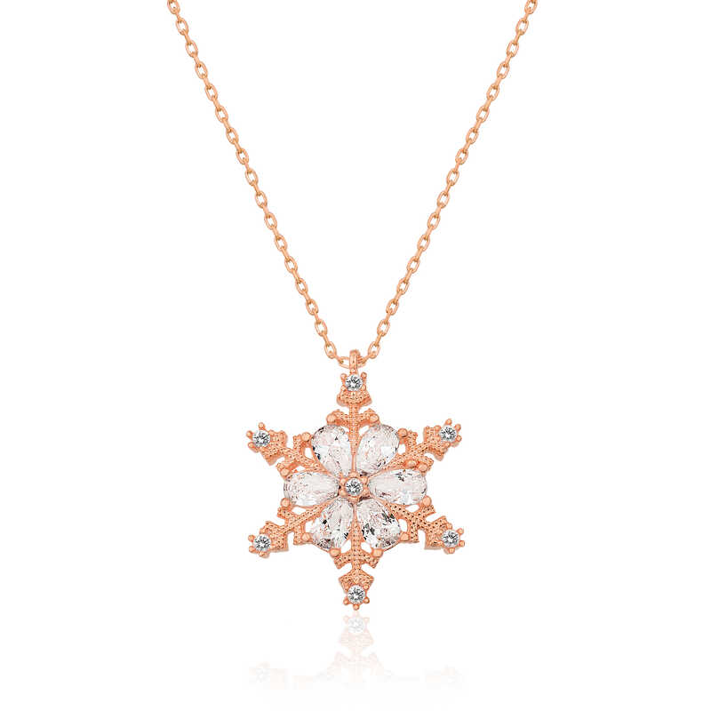 Gümüş Rose Kar Çiçeği Bayan Kolye