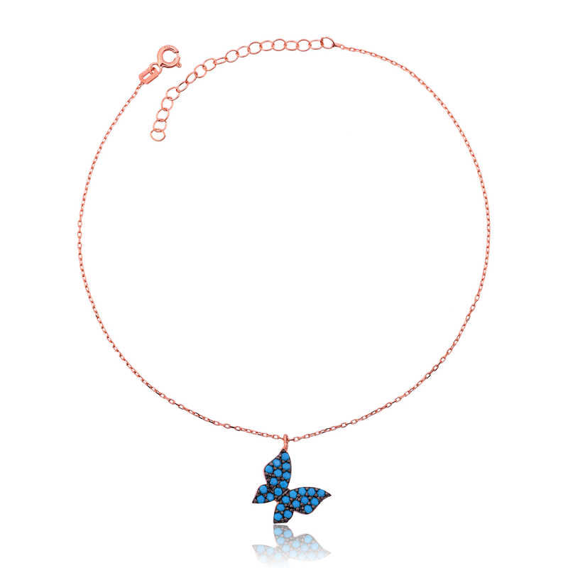 Gümüş Rose Mavi Kelebek Halhal