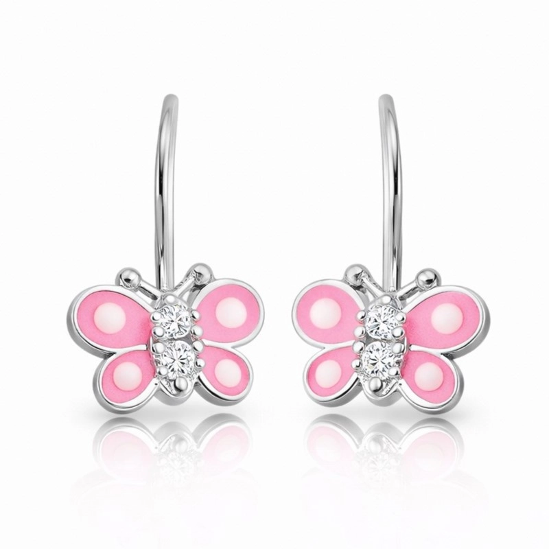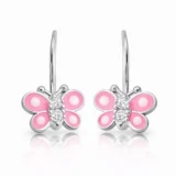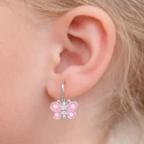 Gümüş Sallantılı Pembe Kelebek Çocuk Küpesi
