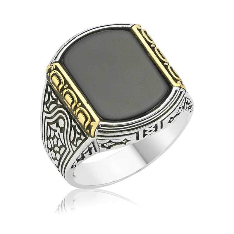 Gümüş Siyah Taşlı Erkek Yüzük