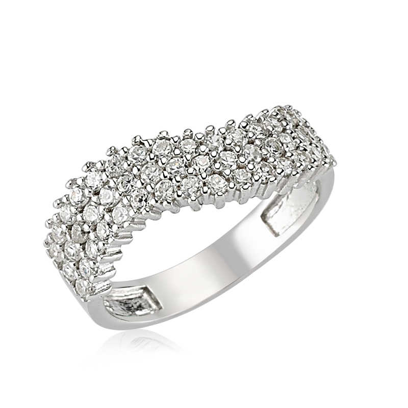 Kendine özen gösteren ve şık olmayı benimsemiş zarif bayanların tercihi genelde gümüş takı modelleridir. Bunlar arasında vazgeçilmez aksesuar gruplarından biri kuşkusuz gümüş yüzüklerdir. Bu yarım tur bayan yüzük 925 ayar gümüşten imal edilmiştir. Gümüş üzerine rodyum kaplama yapılmıştır. Rodyum kaplama yapılan gümüş bayan yüzük modelleri parlaklığını uzun süre muhafaza eder ve oksitlenmesi gecikir. Yüzük üzerinde bulunan beyaz taşlar zirkondur. Tüm bayan yüzük modellerinde olduğu gibi gümüş yarım tur bayan yüzük modeli de el emeği ile üretilmiştir. Gümüş ve değerli taşlar nedeniyle belirtilen ürün ağırlığında ± %10 sapma olabilmektedir.